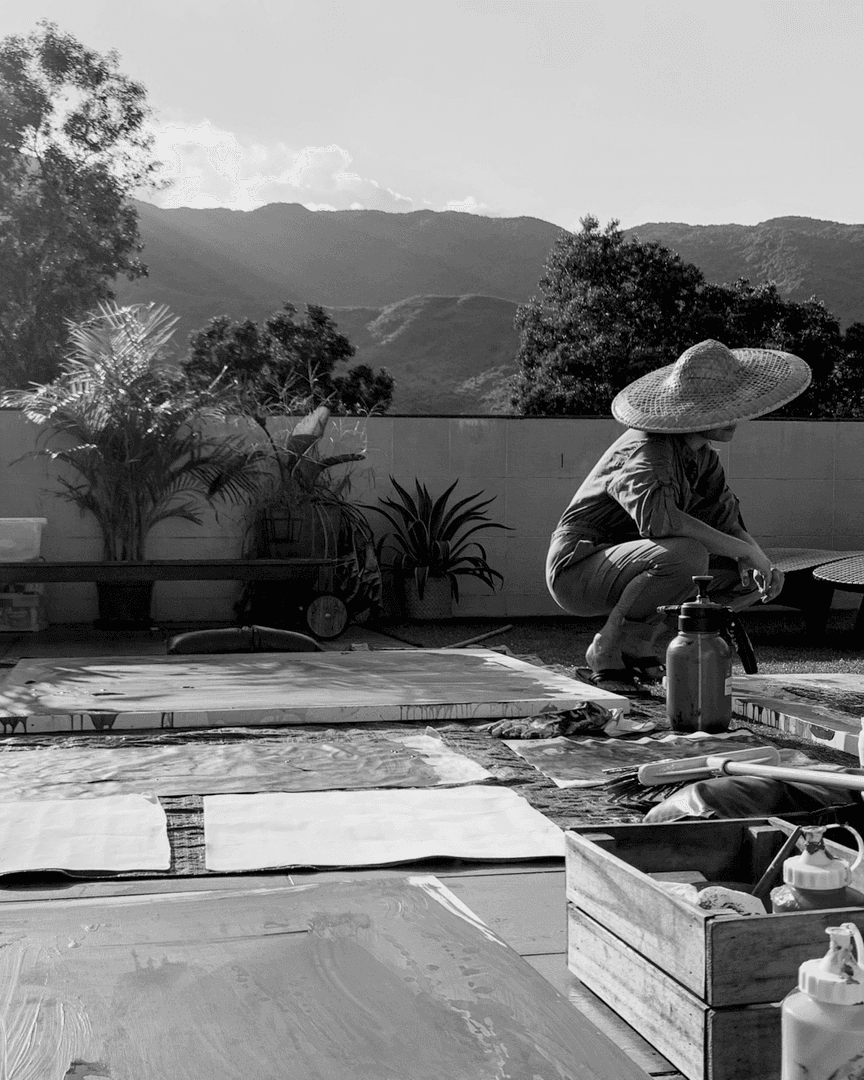 Her creative process is both meditative and intuitive, balancing the spontaneity of single strokes with the contemplative layering of colour fields. Lam has been greatly influenced by Japanese culture, language and philosophy, particularly Wabi Sabi (the beauty of imperfection), Kinsugi and the concept of Ma (stillness, emptiness, or absence). The process of waiting patiently between layers reflects the significance of the space between objects, the silence between sounds, and the stillness between movements.